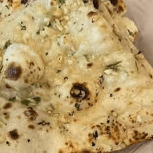 Naan bread stuffed with cheddar cheese & topped with rosemary. Vegetarian