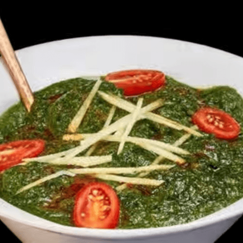 Chopped spinach & broccoli rabe with cubes of paneer & spices. Served with rice
