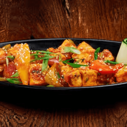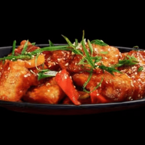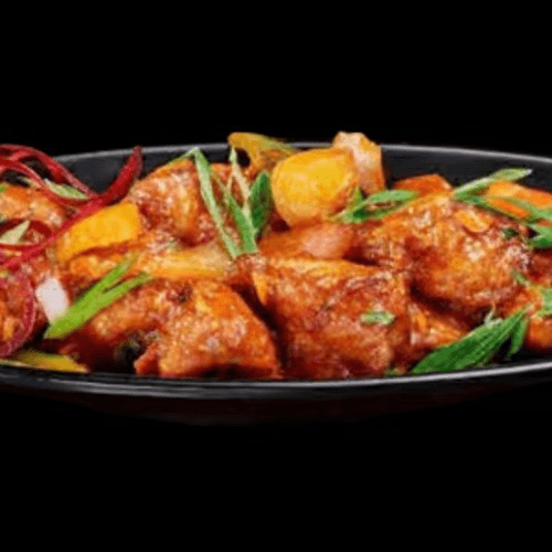 Boneless chicken tossed in a spicy Schezwan sauce light chili sauce. Served with rice