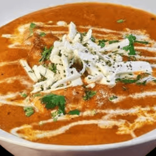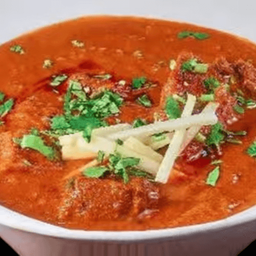 Paneer tikka in a creamy rich tomato gravy. Served with rice