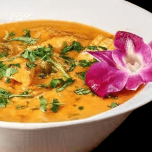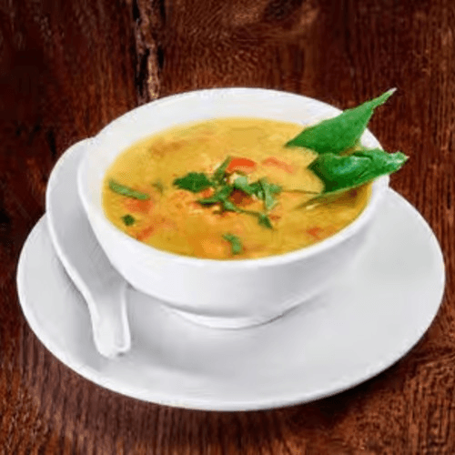Yellow lentil tempered with red whole chili & garlic. Served with rice