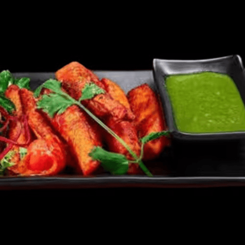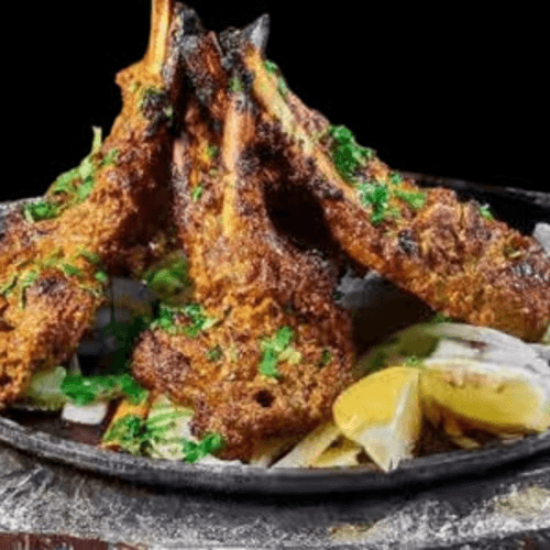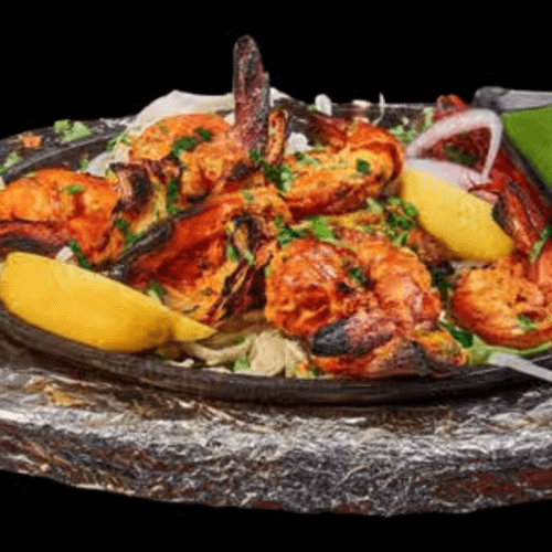 A family feast of juicy tandoori grill meats. Tender succulent lamb chops, jumbo shrimps, salmon tikka, chicken tikka, malai chicken, and chicken chops. Gluten Free.
