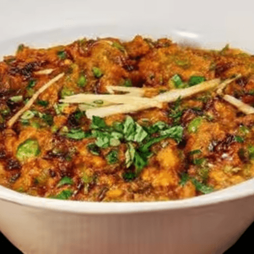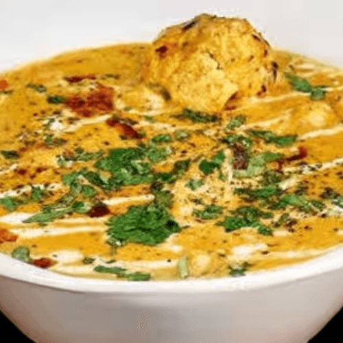 Cottage cheese ball with vegetable medley cooked in a rich onion gravy. Served with rice.