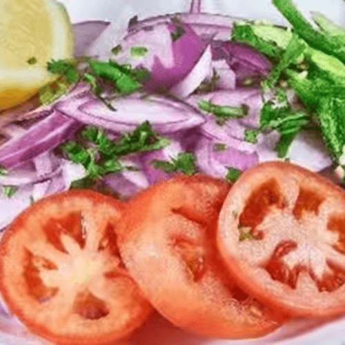 Chopped onions, tomatoes, cucumber on a bed of mix green. Served with raita. Vegan. Gluten Free. Vegetarian