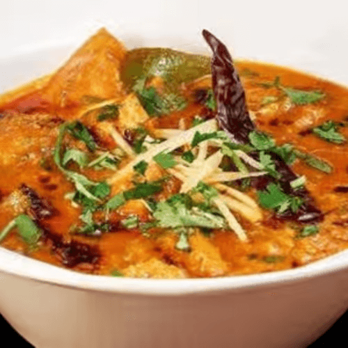 Boneless succulent lamb in a fiery rajasthani chili gravy