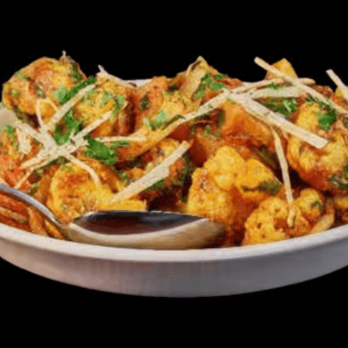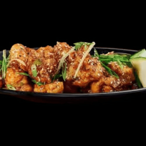 Vegan. vegetarian. Crispy Gobi in a spicy Manchurian chili sauce. Served with rice.